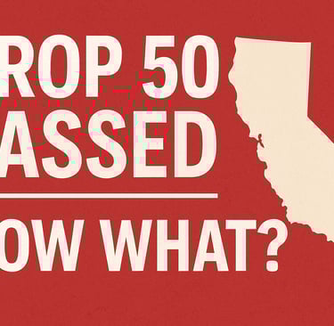 The passage of Prop 50 is more than a political moment. It is a complete reset of the terrain on which campaigns will operate. It changes strategic priorities, alters competitive assumptions and heightens the stakes for the upcoming cycle. What you need to do now is simple. Review the new landscape, adjust quickly, and prepare to run in a world where the rules have changed - because they have.